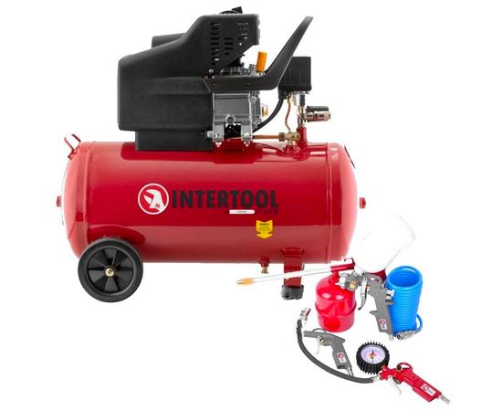 Компрессор 50 литров Intertool и Набор покрасочный 5 ед. PT-0021-PT-1501