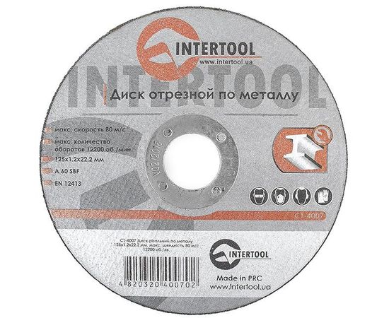Круг отрезной по металлу 125*1.2*22.2мм (CT-4007 Intertool)