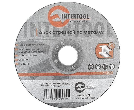 Круг отрезной по металлу 125*1.6*22.2мм (CT-4008 Intertool)