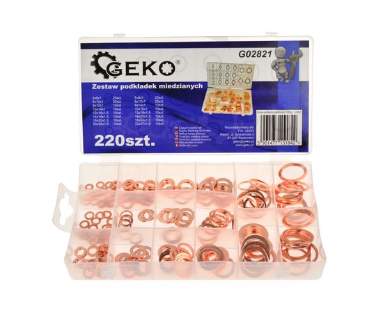 Набор медных шайб 220 шт G02821 Geko